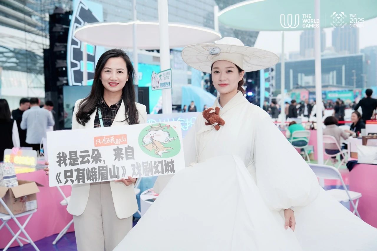 文化演藝展區(qū),來自《只有峨眉山》的一朵“云姑娘”翩翩而來,以如夢似幻的姿態(tài)再現(xiàn)《只有峨眉山》的沉浸式體驗(yàn),讓游客們在活動現(xiàn)場就能體驗(yàn)到和在劇場一樣的情景化角色互動,深刻展現(xiàn)峨眉文化的深厚底蘊(yùn)與獨(dú)特韻味。